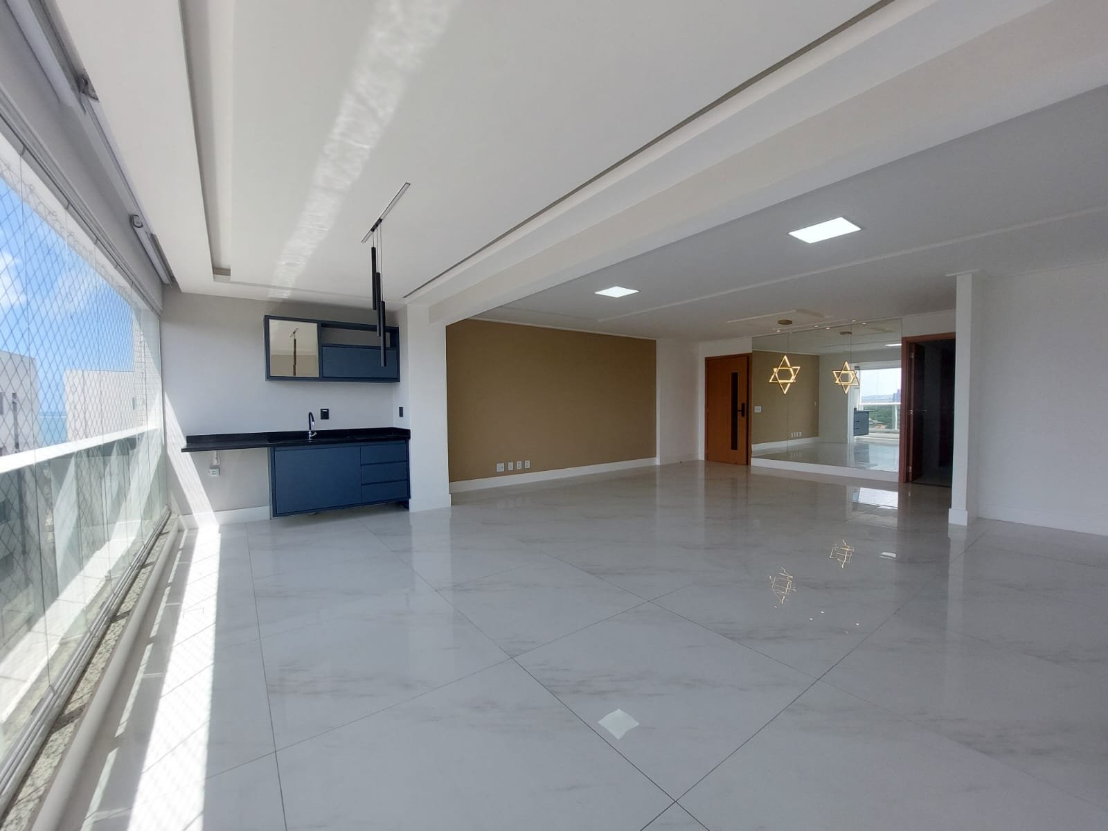 Apartamento com 3 quartos , sendo todos suítes com armários, último andar, 140m², suíte master com armário e preparação para tv, cortinas blackout, iluminação nas suítes nos cortineiros com fita led, banheiros com armários – espelhos – box de vidro – chuveiro e pedras decoradas, ar condicionados novos com controles nas 3 suítes, sala ampliada, porcelanato 1×1, parede com gesso 3D, cortina elétrica com controle remoto, pintura nova, parede com espelho do chão ao teto, rack, porta digital, armário na cozinha com fita de led, forno, fogão cooktop, coifa, varanda com armário, lavabo decorado com pedras nas paredes, espelho e pendente, apt com iluminação completa em todos os ambientes, fiação pronta para tv e internet em todos os cômodos, chaves em todas as portas, dependência de empregada completa com box de vidro no banheiro, varal inteligente, tela de proteção em todas as janelas, 2 vagas de estacionamento.