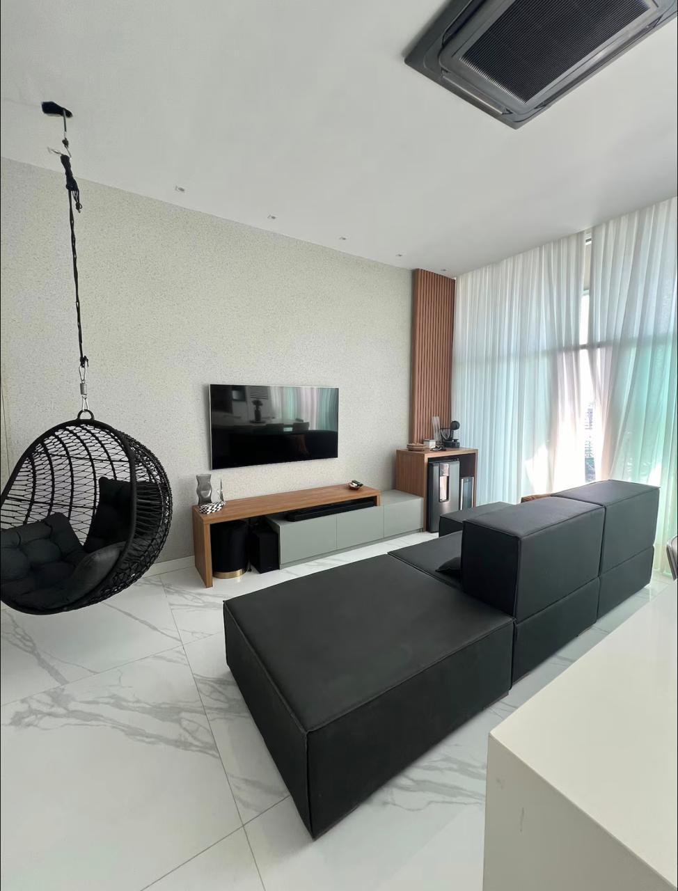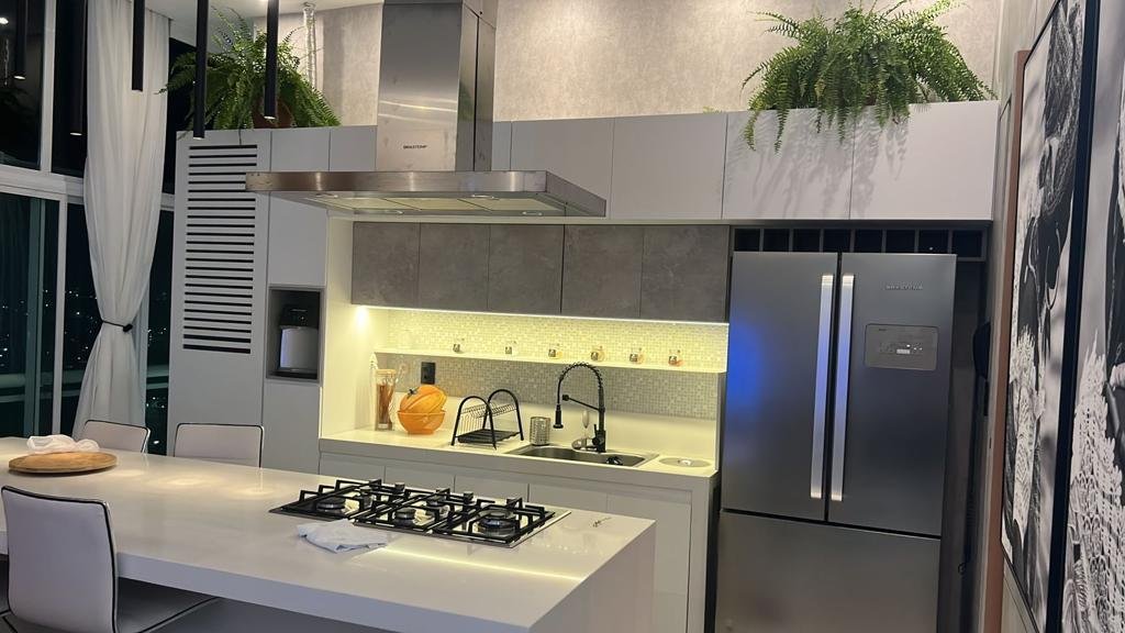 Cobertura mobiliada com 2 quartos, sendo 1 suíte, closet, 91m², 2 banheiros, 2 vagas de garagem, ar condicionado, área de serviço, armários no quarto e na cozinah, churrasqueira, varnada gourmet, nbanheira de hidromassagem, academia, elevador, permitido animais, piscina, salão de festas, portaria, segurança 24h