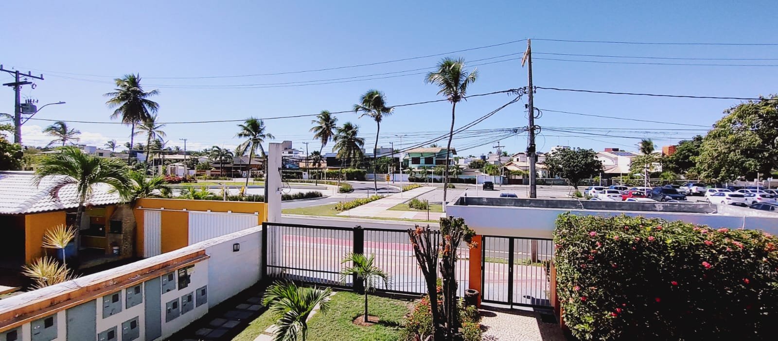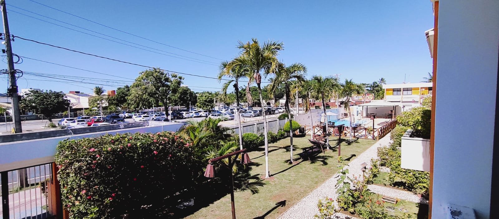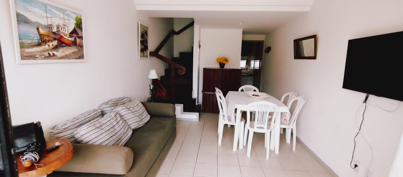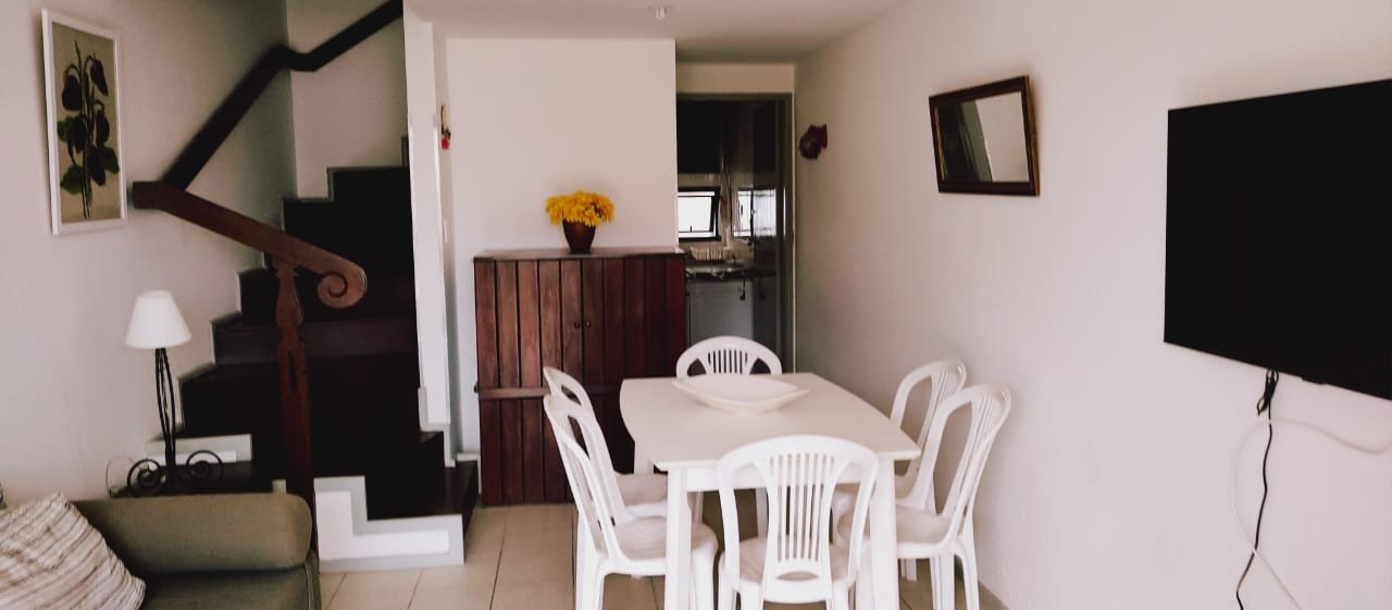 VILLAGE VILLA DA PRAIA na Praça de Guarajuba. Com acesso a mercados, farmácia, bares, sorveteria e restaurante. 60m a pé (1 min) pro calçadão da praia, bem ventilado e iluminado. 02 quartos com ar condicionado(andar superior), 1 cama de casal e 3 camas de solteiro, lavabo na sala de estar, 1 banheiro externo na área de serviço, cozinha completa com geladeira, freezer e fogão, piscina com área verde.